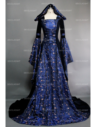 Fantasy Blue Velvet Hooded Medieval Gown Devilnight Co Uk Medieval Gown Medieval Dress Old Fashion Dresses